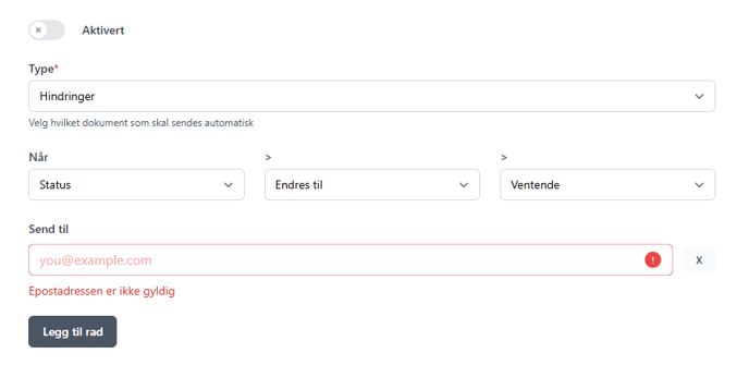 - E-postadressen til den som skal motta automatisk utsending av rapport