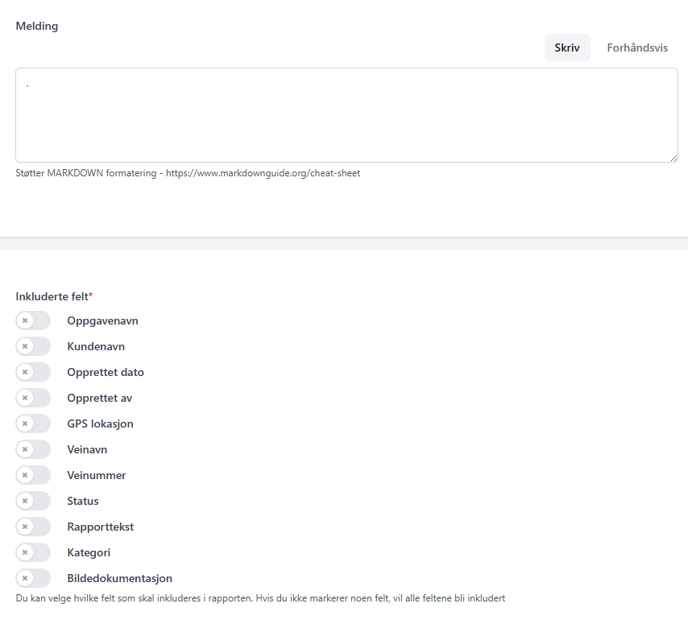 - Tilpass meldingen og hvilke felt som skal inkluderes i rapporten.