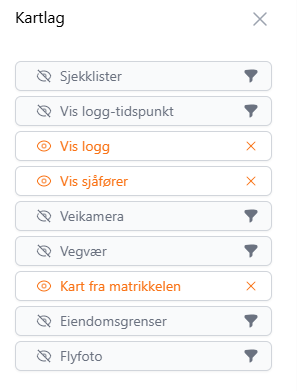 Du kan filtrere hvilke roder og oppgaver som vises i kartet basert på behov.
