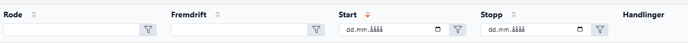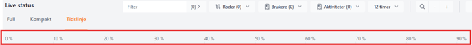 Trykk på Fremdrift-knappen øverst på siden for å åpne en rapport som viser prosentvis fremdrift på turer. Øverst i rapporten kan du velge ønsket filter og periode.