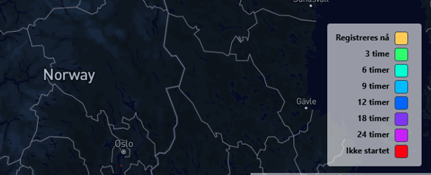 - Oversikt over øvrige fargekoder finnes i nedre høyre hjørne av kartet.