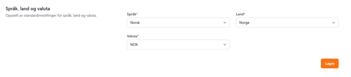 Her kan du velge hvilket språk og valuta ditt AutoReg-firma skal ha.