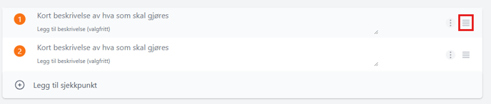 - Juster rekkefølgen på sjekkpunktene ved å trykke på ikonet med fire linjer ytterst til høyre og dra og slippe punktene.