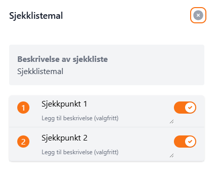 - Veøg sjekklistemal og trykk Opprett sjekkliste.