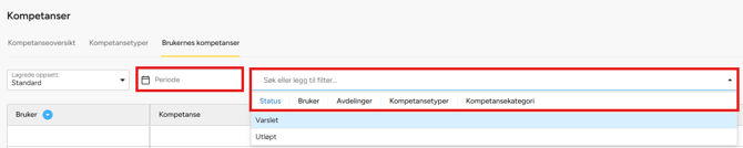 - Filtrere etter periode: Velg en spesifikk tidsperiode for å se relevant kompetanse.