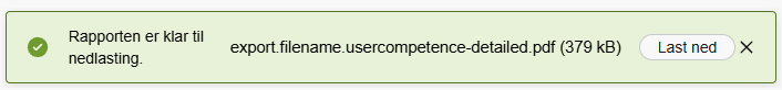 Merk: Eksport til PDF kan ha begrensninger på antall kompetanser som kan inkluderes i én eksport.