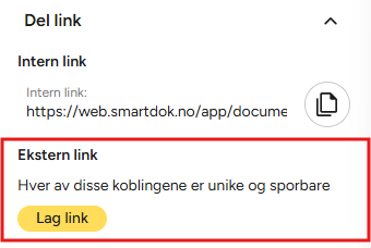 Filer i Dokumentsenteret kan deles både internt og eksternt ved hjelp av lenker eller QR-koder.