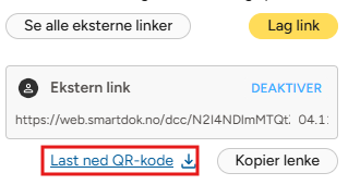 - Det er mulig å laste ned en QR-kode som kan deles med eksterne.