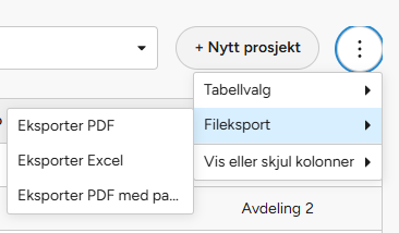 Gå til Prosjekter/Kunder → Prosjekter → Prosjektoversikt.