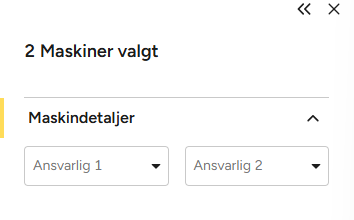 - I sidepanelet ser du hvor mange maskiner som er valgt. Her blir feltene for Ansvarlig 1 og Ansvarlig 2 tilgjengelige.