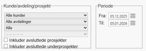 Velg prosjekt og periode