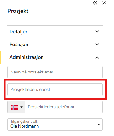 - I feltet Administrasjon → Prosjektleders epost, legg til ønskede e-postadresser.