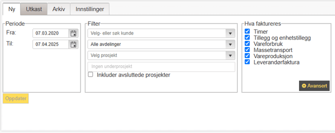 Her starter du når du skal lage et nytt fakturagrunnlag.