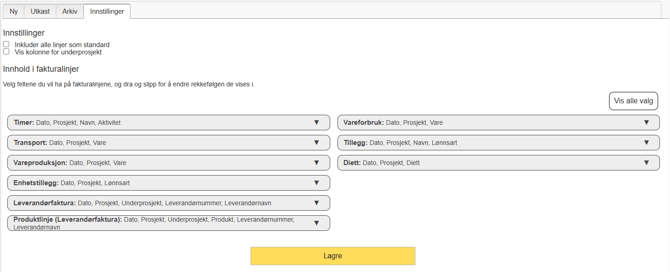 Under Innstillinger velger du hvordan fakturalinjene skal se ut.