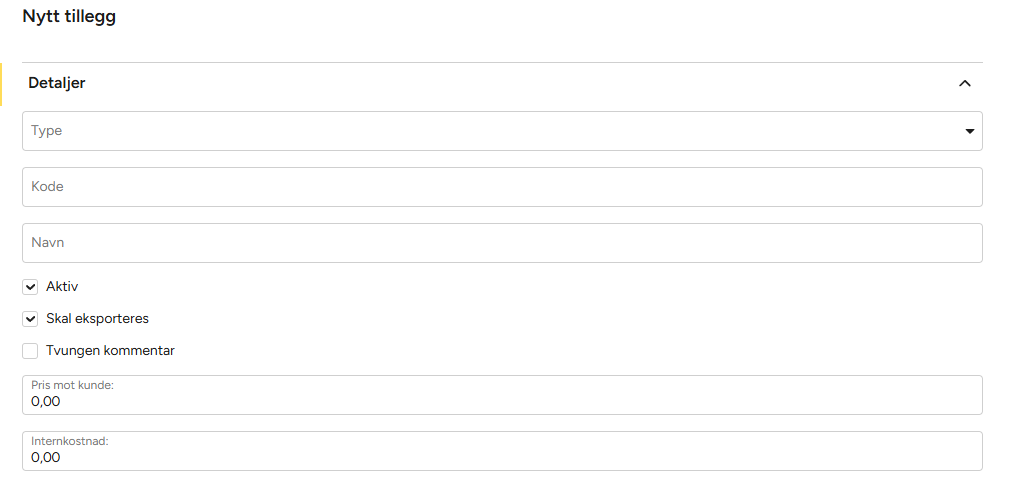 - Eksporteres til lønn: Huk av dersom tillegget skal inkluderes i lønnseksporten.