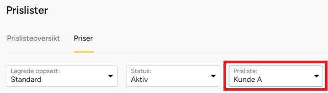 Velg aktuell prisliste.