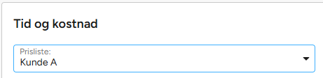 Under Tid og kostnad knytter du prosjektet til ønsket prisliste.