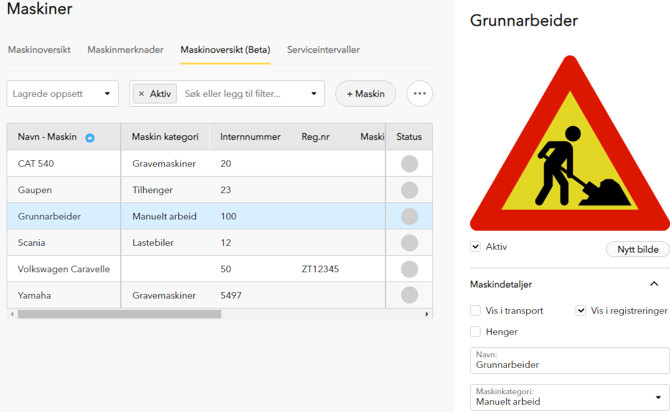 Ja, du kan opprette flere maskiner for ulike typer arbeid, som Manuelt arbeid, Grunnarbeid, eller lignende.