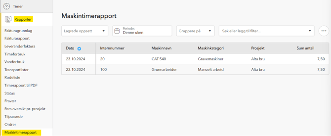 Maskintimerapport: