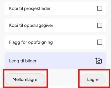 Dersom dere skal jobbe videre med skjemaet, trykk Mellomlagre.