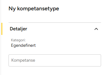 - Alle egendefinerte kompetanser legges automatisk i kategorien Egendefinerte.