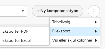 Kompetansetyper gir en oversikt over alle kompetansetyper som er registrert på bedriften. Her kan du se informasjon om eksisterende kompetanser og opprette egendefinerte kompetanser.