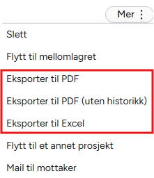 Eksporter til PDF (med eller uten historikk).