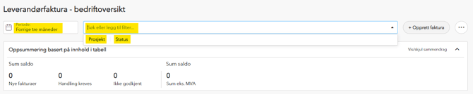 - Filtrer på prosjekt eller fakturastatus, ved å klikke i Søk eller legg til filter.