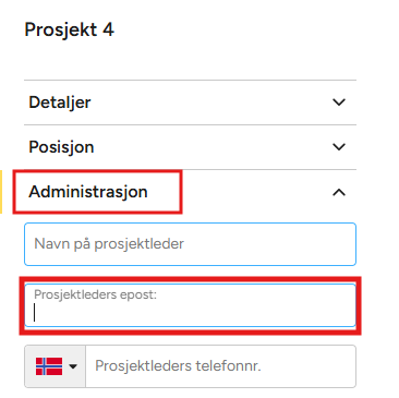 • Kontaktopplysninger for prosjektleder: Sørg for at prosjektlederens kontaktinformasjon (e-post) er korrekt registrert i prosjektdetaljene.