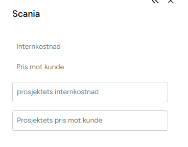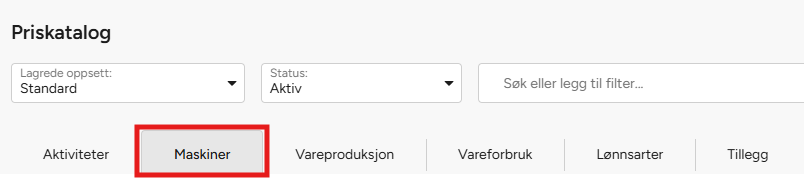 Dersom det ikke er satt egne prosjektpriser brukes i stedet standardprisen fra priskatalogen/i maskindetaljene.