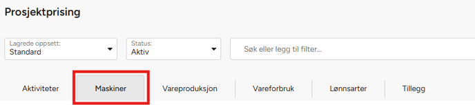 Definere prosjektspesifikk maskinpris: