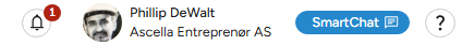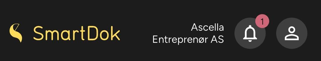 På topplinjen i SmartDok på web vises et bjelleikon som varsler om nye meldinger.