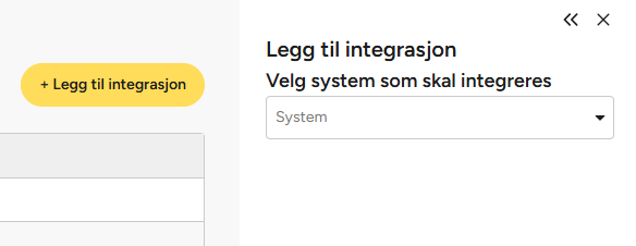Gå til Integrasjoner → Integrasjonsoppsett → Trykk +Legg til integrasjon.