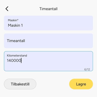 - Fyll inn nødvendig informasjon om timetall eller kilometerstand.