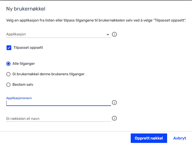 7. Kopier API-nøkkelen – denne vises kun én gang og må lagres sikkert.
