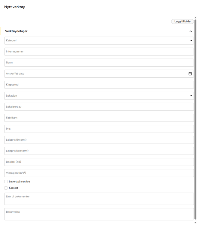 - Legg til bilde (valgfritt): Last opp bilde av verktøyet for enklere gjenkjenning. Det er mulig å laste opp inntil 5 bilder per verktøy.