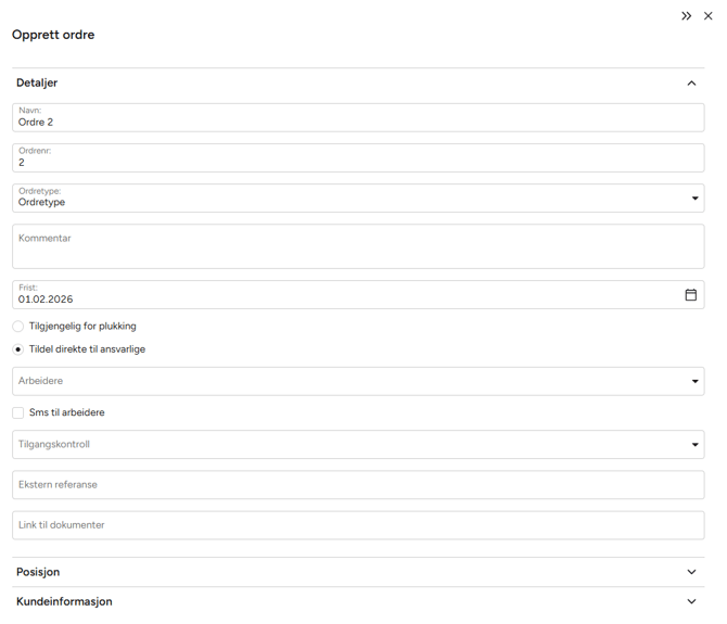 - Ordretype og frist