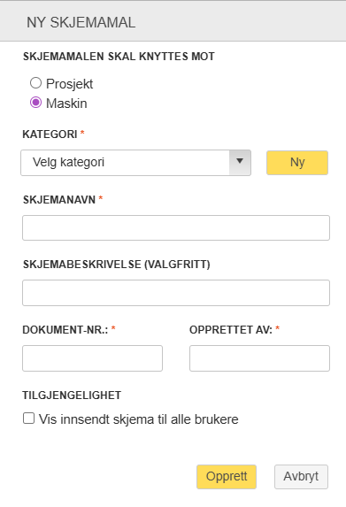 Opprette skjema mot maskin