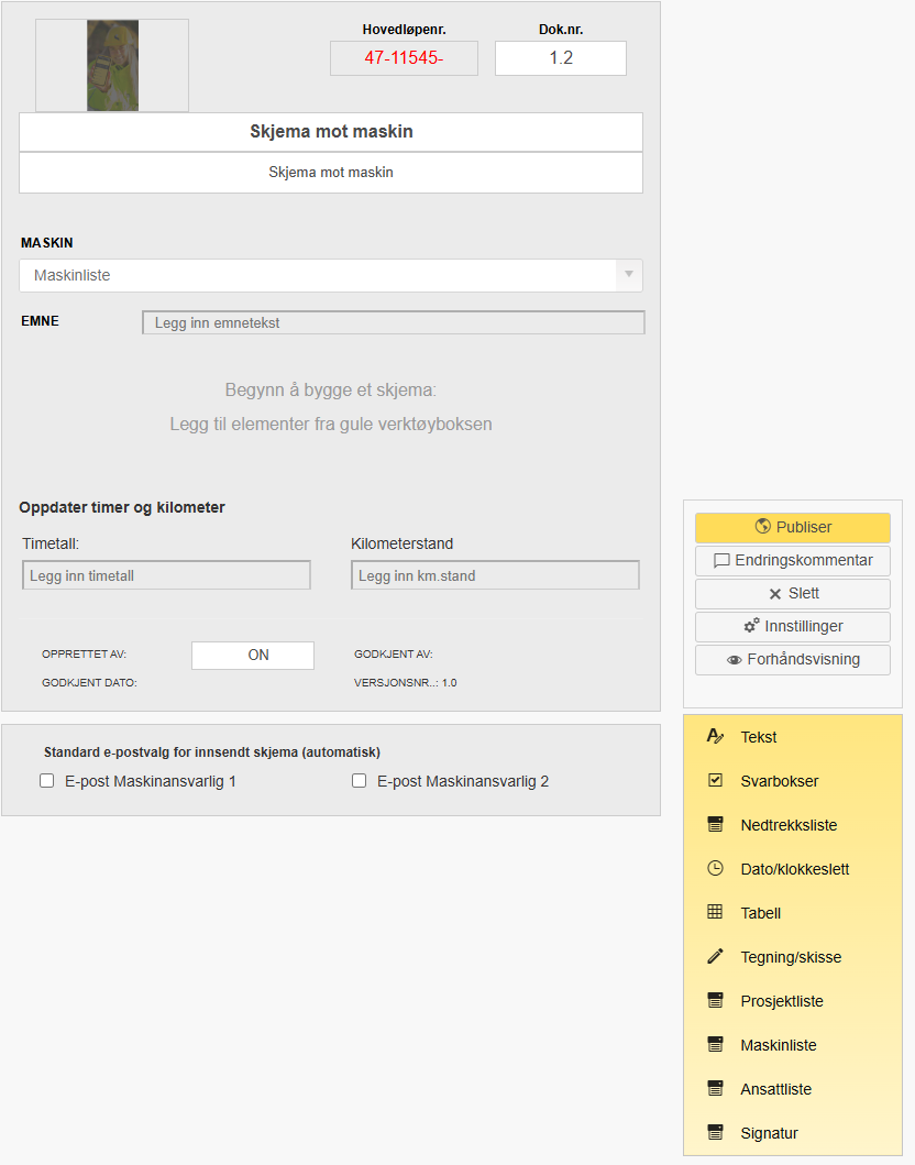 1. Skjemabyggeren åpnes automatisk.