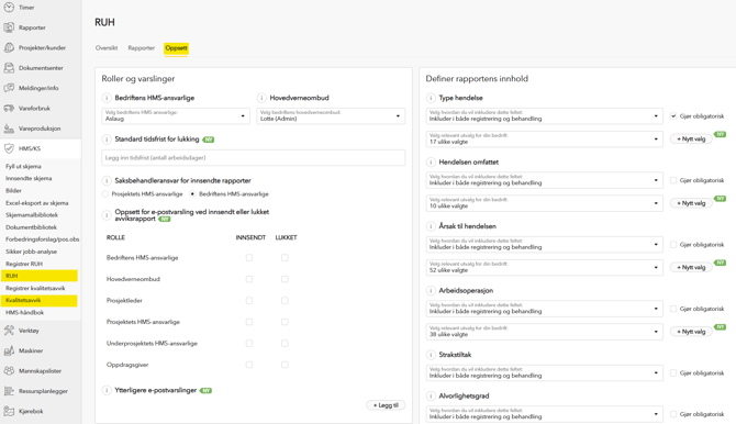 - SmartMEF eller HMS/KS → Kvalitetsavvik → Oppsett og gjennomgå innstillingene.