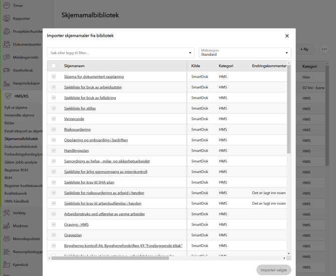 Bedriftstilpass ferdige skjemamaler fra SmartDok (Kun for HMS/KS pro)