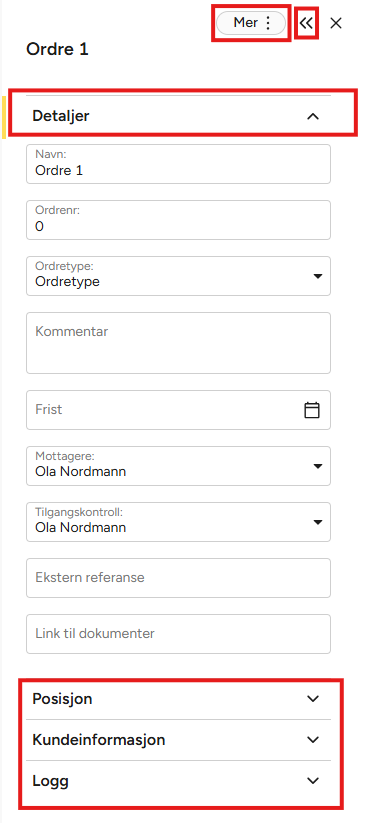 - Klikk på ordren for å åpne sidepanelet til høyre.