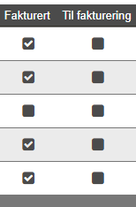 Fakturering: Marker registreringer som Til fakturering eller Fakturert, og bruk disse som filtre.