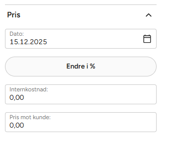 Juster kostnad eller pris basert på prosentvis endring. Legg inn ønsket prosentverdi.