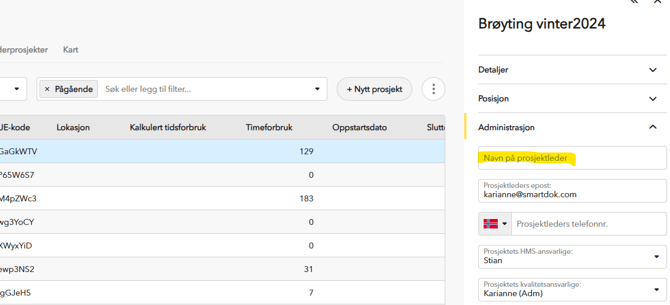 Bytte Prosjektleder på et prosjekt