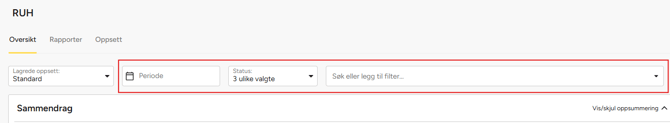 Oversikten gir innsyn i alle RUH-rapporter som brukeren har tilgang til å se eller behandle.