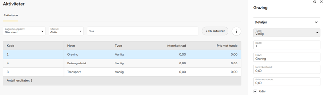- Klikk på den aktuelle aktiviteten slik at sidepanelet åpner seg på høyre side av skjermen.