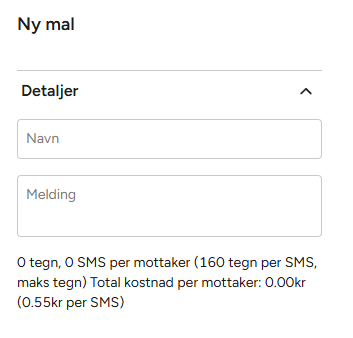 Alternativt kan du lagre en mal direkte fra Send SMS-siden ved å trykke på Lagre som mal.