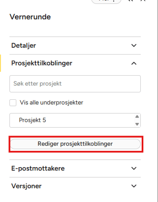 - Trykk Rediger prosjekttilkoblinger.