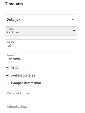 I SmartDok kan du angi en standardpris mot kunde for hver lønnsart eller tillegg, og samtidig sette en prosjektspesifikk pris om nødvendig.